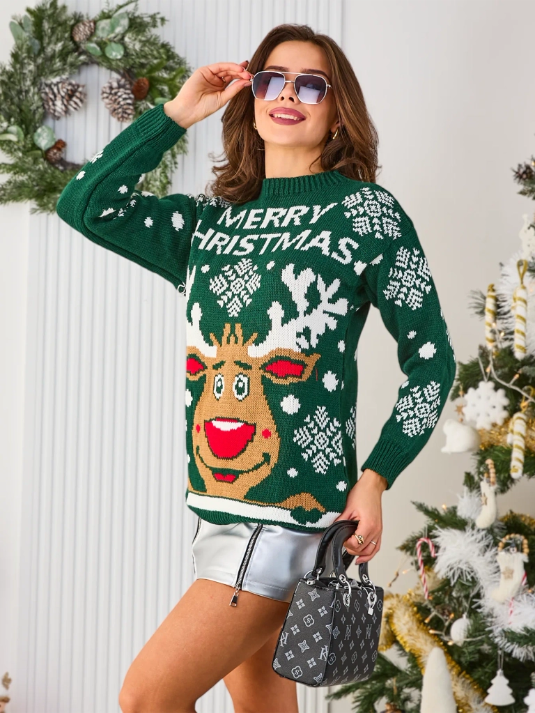 Royalfashion Тъмнозелен дамски коледен пуловер с елени