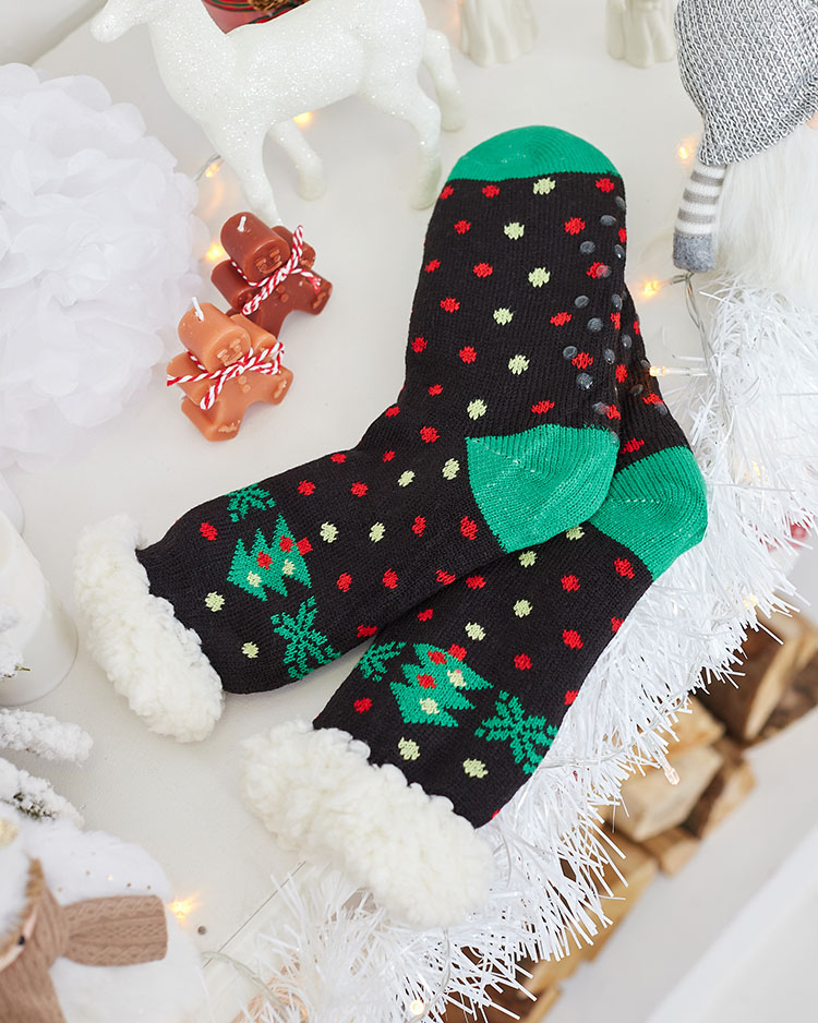 - Красиви дамски плътни чорапи с коледен десен и нехлъзгаща се долна част. Отвътре са изолирани с бяла топла овча кожа. Чорапите ще са чудесни за по-студените вечери.