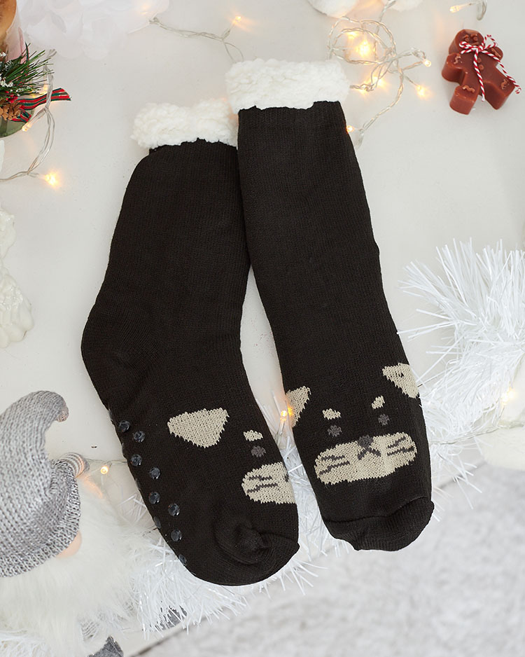 - Красиви дамски дебели чорапи с принт. Отвътре са изолирани с бяла топла овча кожа. Чорапите са чудесни за по-хладните вечери!