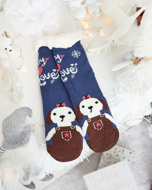 - Красиви дамски плътни чорапи с коледен десен и нехлъзгаща се долна част. Отвътре са изолирани с бяла топла овча кожа. Чорапите ще са чудесни за по-студените вечери.