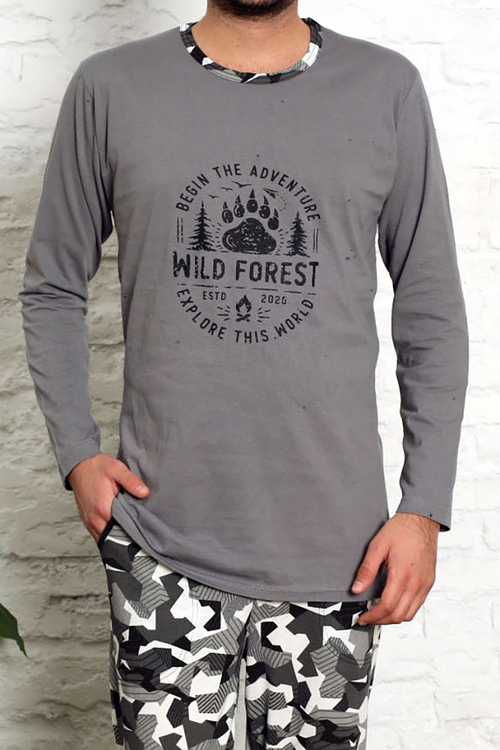 - Мъжка пижама в интересни цветове, изработена от памучна материя. Блуза, закопчана с копчета, панталон, декориран с карирана щампа. Моделът е с дълги ръкави и крачоли. ЗАБЕЛЕЖКА: Точност на измерване (+/-) 1 cm.