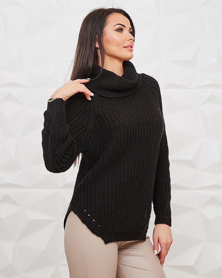 Royalfashion Черен дамски пуловер с ролка