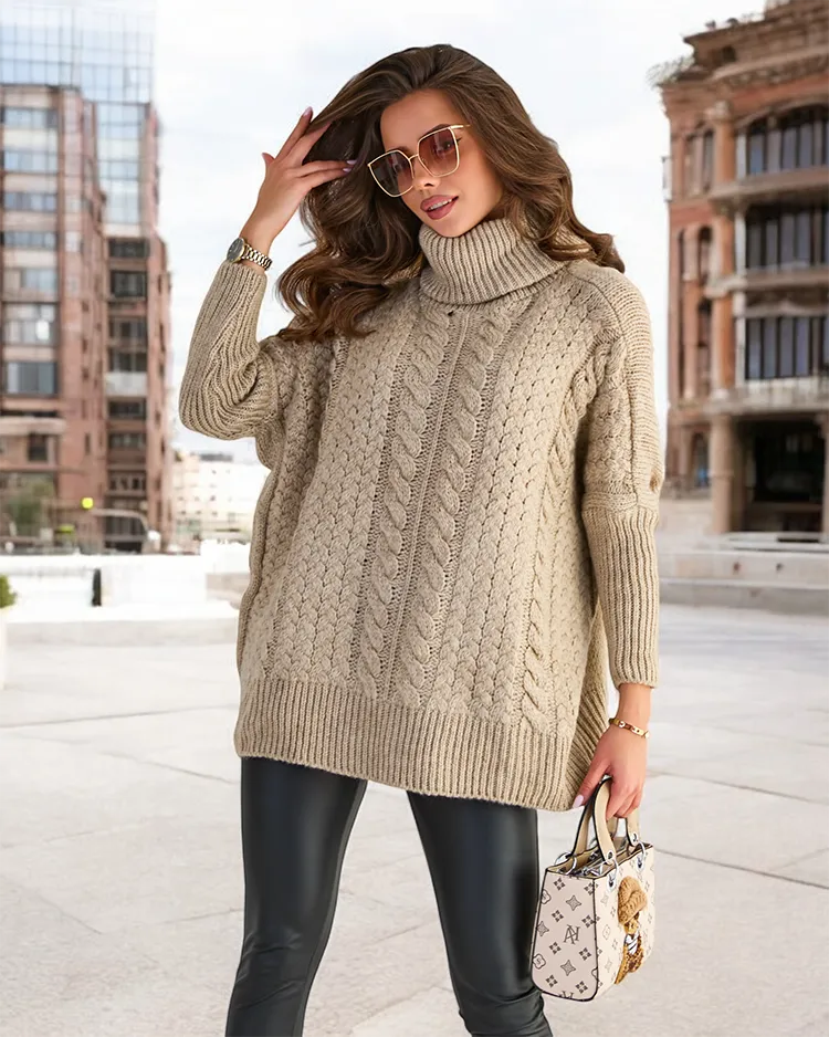 - Този класически пуловер е есенция на комфорт и чар. Изработен от мека материя, пуловерът е с ролка и дълги ръкави. Плетеното каре му придава неповторим чар!