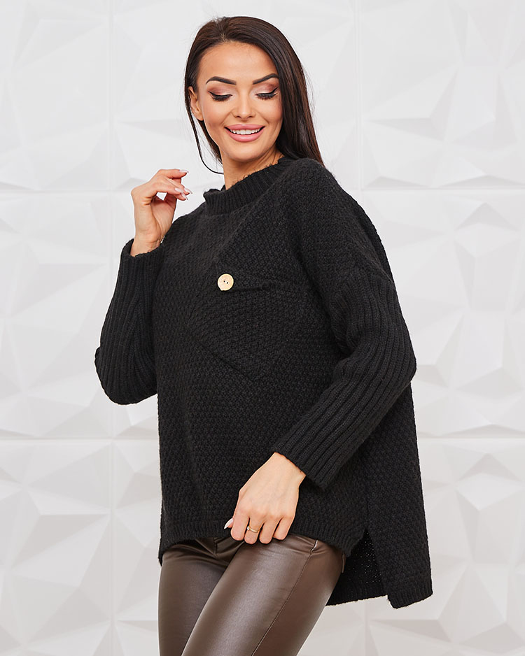 - Този стилен пуловер е есенция на комфорт и чар. Изработен от мека материя, пуловерът е с кръгло деколте и дълги ръкави. Джобовете му придават неповторим чар!