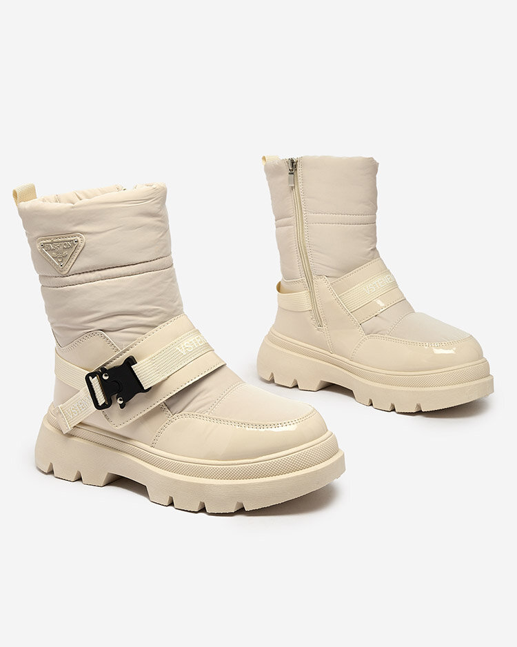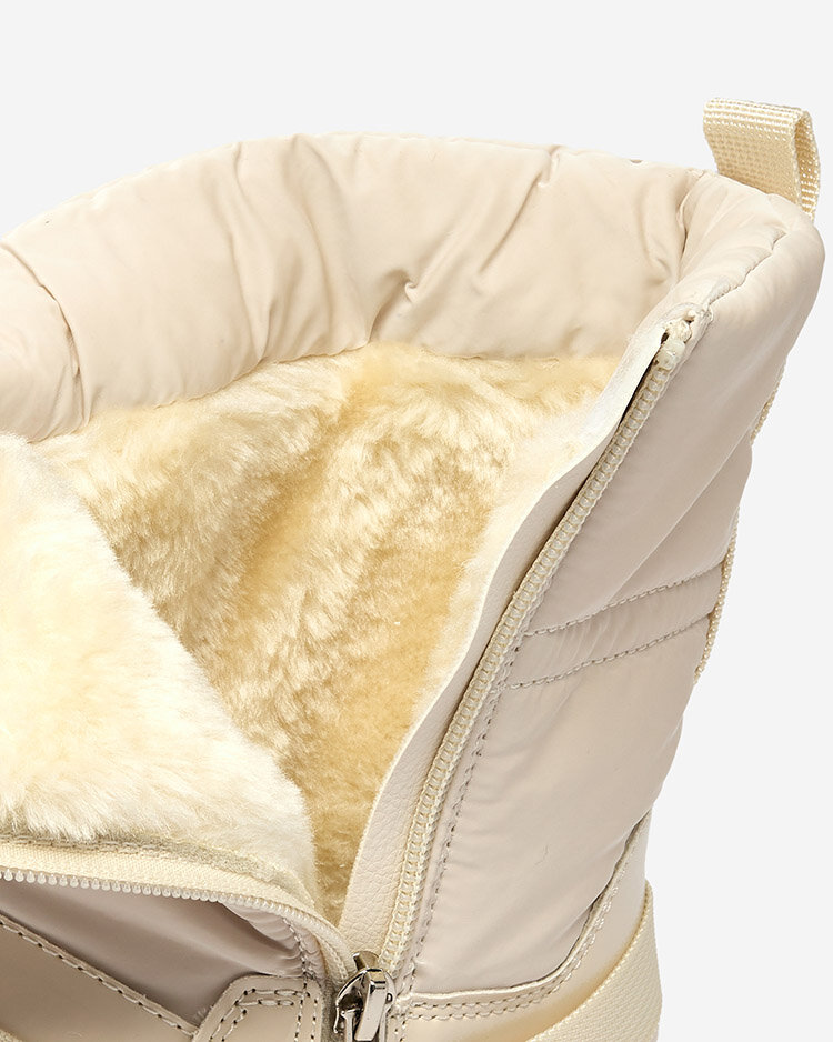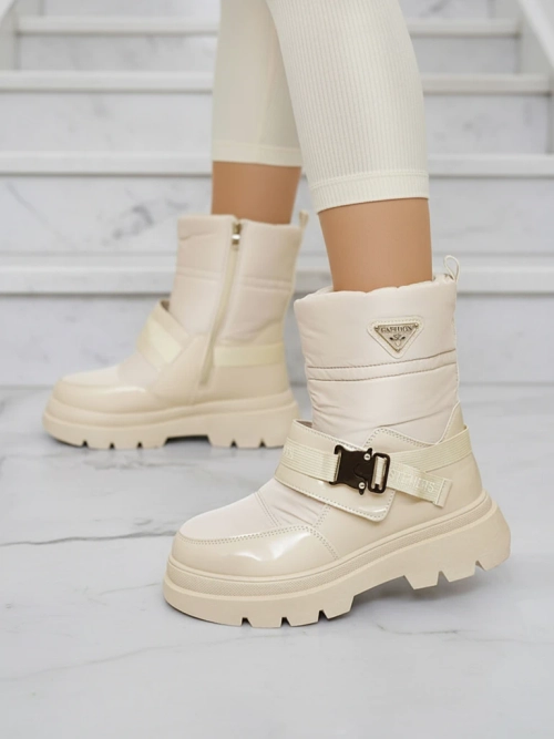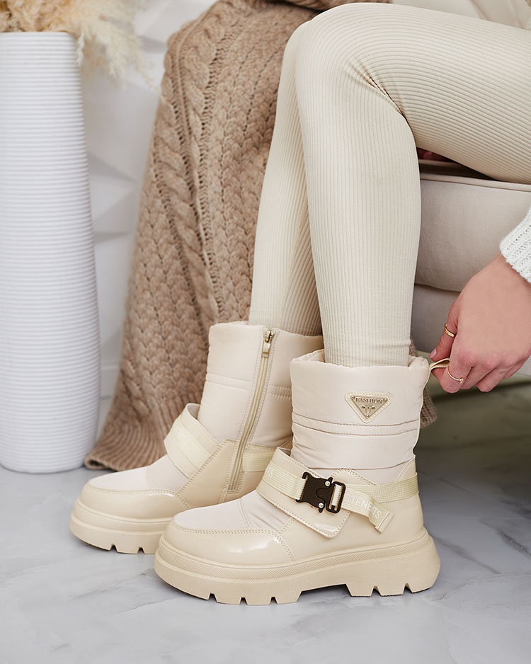 - Дамски ботуши за сняг с горна част, изработена от материал a'la cerata и еко лачена кожа. Изолация отвътре под формата на изкуствена кожа, обувките се закопчават с цип и велкро. Идеални за студения сезон!