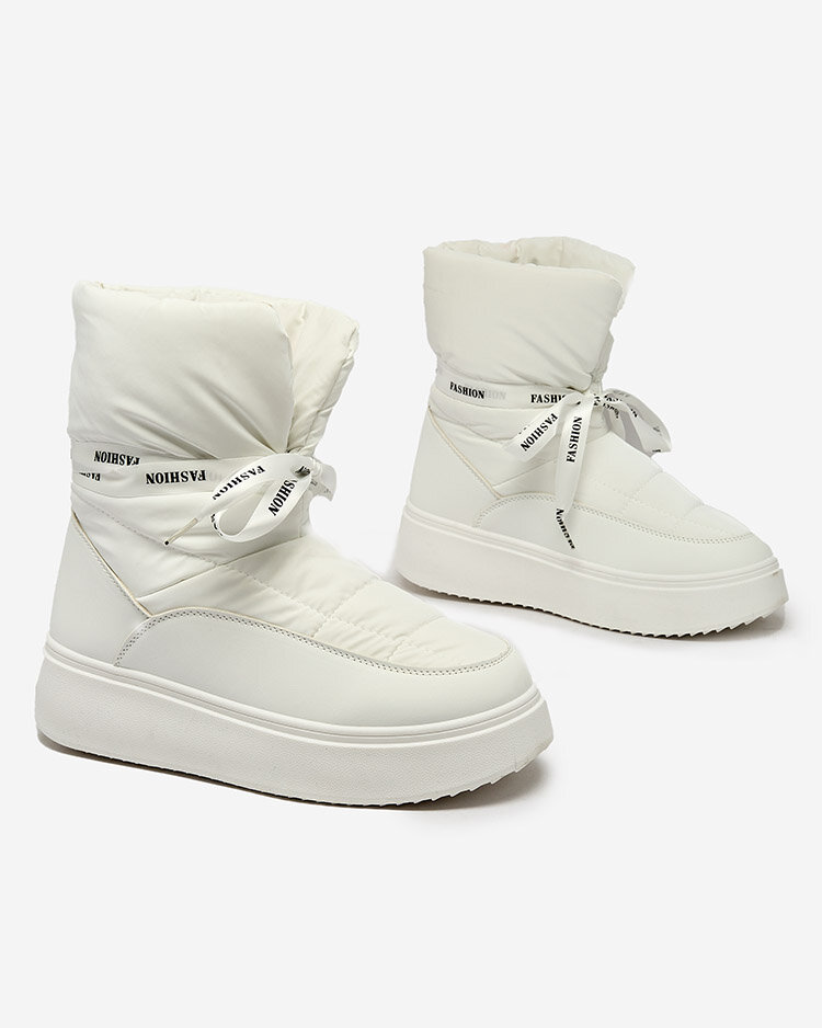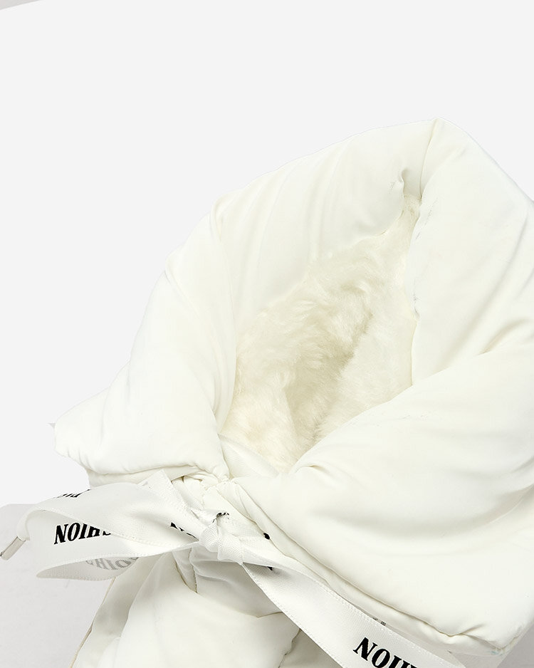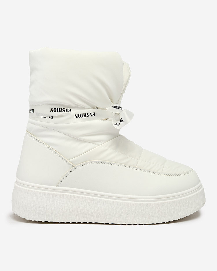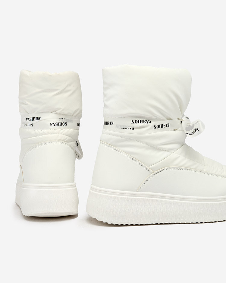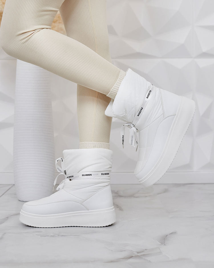 - Сензационни дамски ботуши за сняг. Горната част е изработена от материал a'la cerata и вложки от екологична кожа. Отвътре има затопляне под формата на кожа, обувките се обуват с приплъзване и имат панделка. Перфектни за студения сезон!