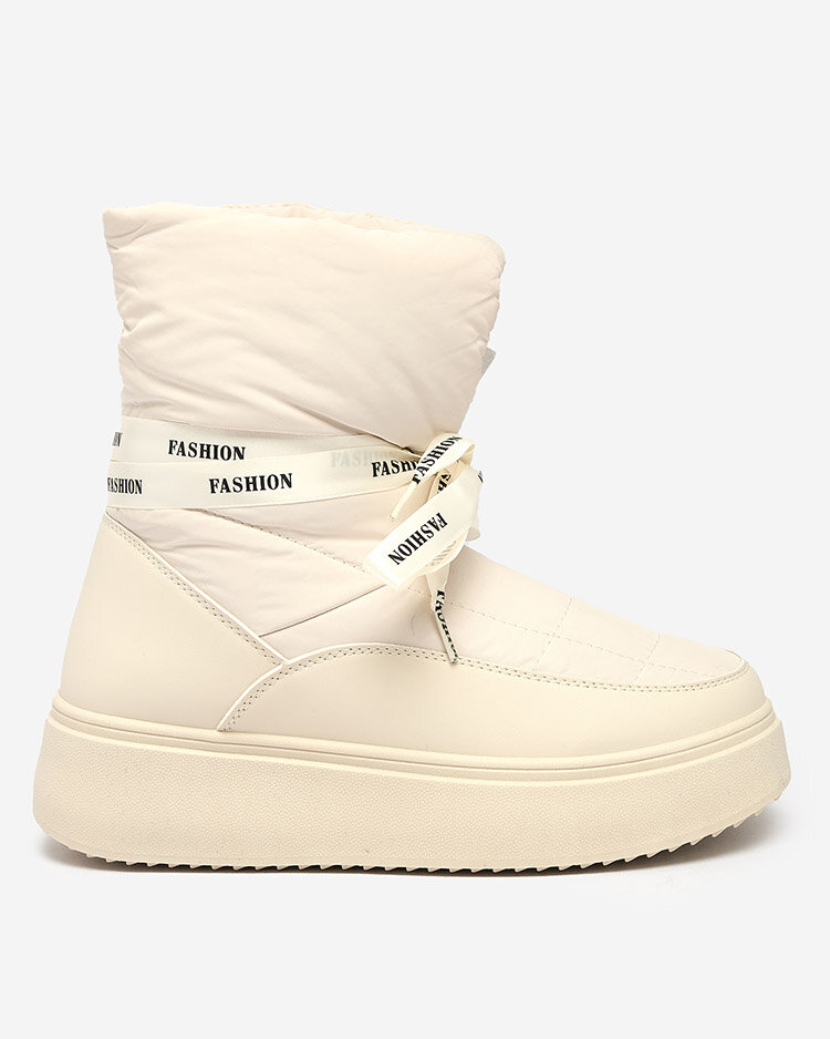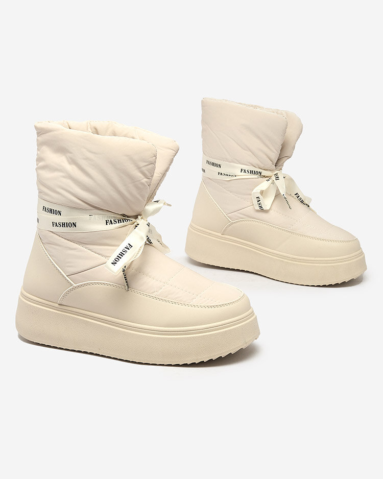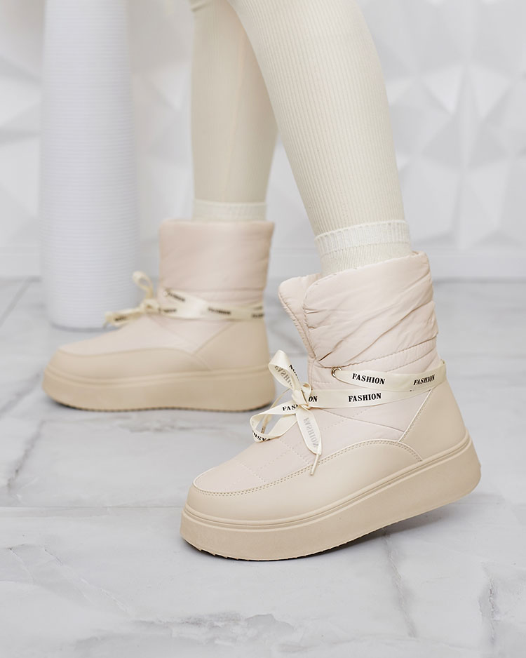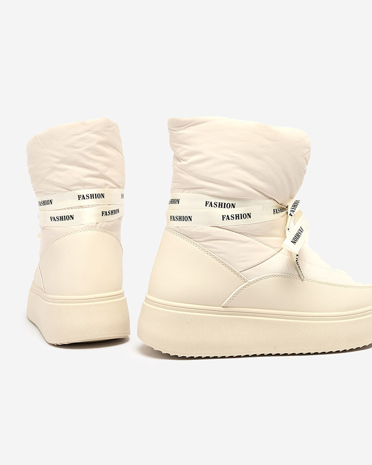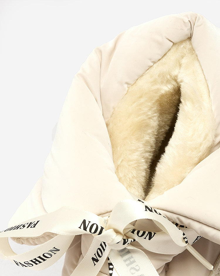 • Сензационни дамски ботуши за сняг. Горната част е изработена от материал a'la cerata и вложки от екологична кожа. Отвътре има затопляне под формата на кожа, обувките се обуват с приплъзване и имат панделка. Перфектни за студения сезон!