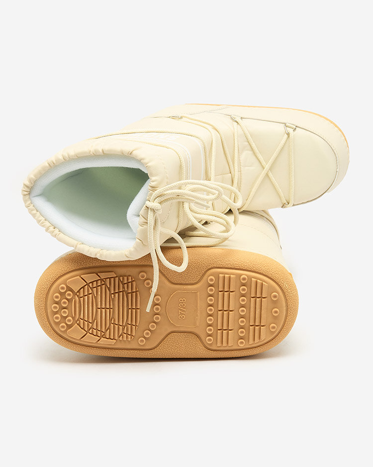- Дамски ботуши a'la snow boots. Изработени от плат, изолирани с пяна и с вложки от еко кожа. Модел с дантела, има кант в горната част на горната част. Идеален избор за зимен стайлинг!
