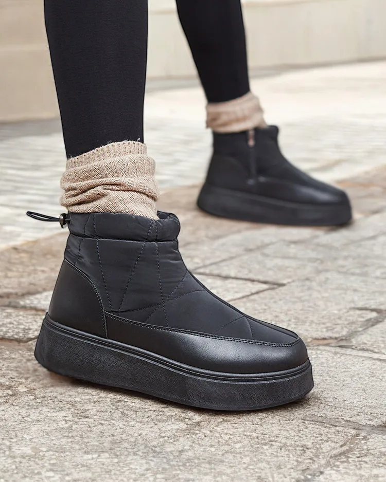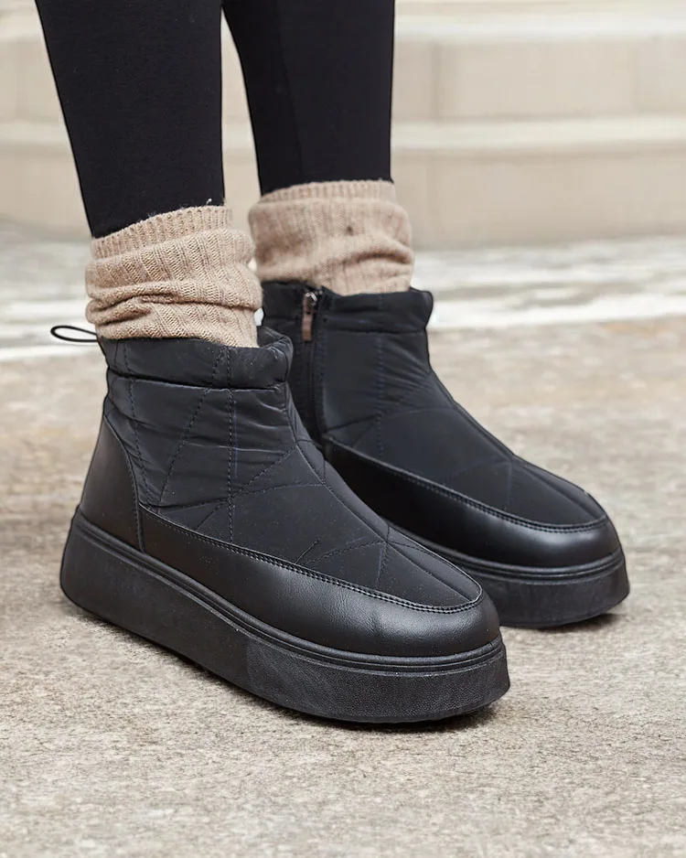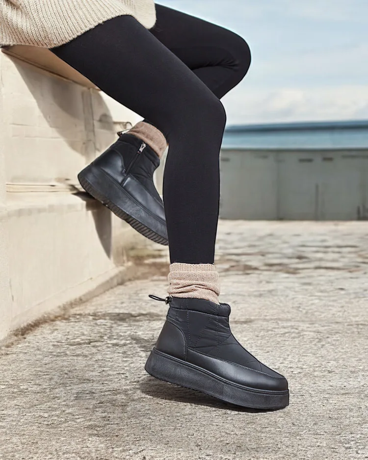 - Сензационни дамски ботуши за сняг. Горната част е изработена от материал а'ла маслен плат и вложки от екологична кожа. Отвътре има затопляне под формата на кожа, обувките се закопчават с цип и имат кант. Идеални за студения сезон!