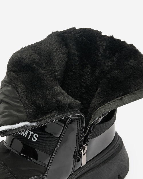 - Дамски ботуши за сняг с горна част, изработена от материал a'la cerata и еко лачена кожа. Отвътре затопляне под формата на изкуствена кожа, обувките се закопчават с цип и велкро. Идеални за студения сезон!