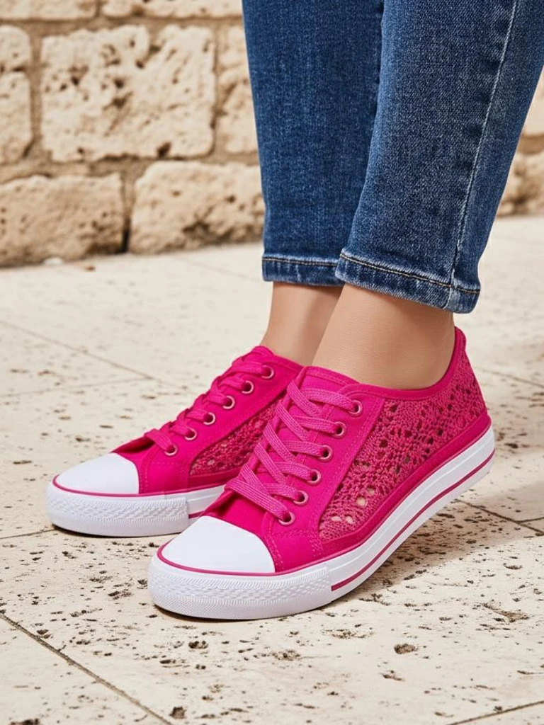 Дамските кецове Callista в цвят фуксия са предложение за любителите на комфорта и стила в едно. Горната им част е изработена от висококачествен памучен плат с ажурна плетка, която не само изглежда изключително женствено, но и гарантира отлична дишаемост дори в най-топлите дни. Ръчно завършените елементи и усъвършенстваният производствен процес осигуряват издръжливост и комфорт при всяка стъпка. Стелката също е ушита от мека материя, осигуряваща комфорт през целия ден, а плоската подметка с височина 2,5 см от еластичен материал се адаптира към движенията на крака, абсорбира ударите и е идеална за дълги разходки.Ползите от носенето на тези обувки са не само комфорт и лекота, но и подчертаване на собствения стил както в ежедневни, така и в полуформални стилизации. Материята позволява на краката да дишат и минимизира риска от прегряване или протриване дори при интензивна употреба. Модерният цвят фуксия освежава всяка стилизация и идеално се вписва в актуалните цветови тенденции на сезона пролет-лято.Три предложения за стилизации:1. Заложете на ежедневно облекло: комбинирайте кецовете Callista с любимите си дънки mom-fit и бяла тениска, добавяйки леко дънково яке – идеално за излизане с приятели.2. Спортен стил: изберете клин и по-дълга блуза в пастелен цвят – удобно за разходка или активно разглеждане на града.3. Момичешка версия: облечете ефирна миди рокля на цветя или пастелна пола с топ с презрамки. Ефектът на лекота ще бъде подчертан именно от кецовете в цвят фуксия.Поддръжката на обувките се състои в редовно отстраняване на замърсяванията с мека четка или влажна кърпа. При необходимост можете внимателно да изперете замърсяванията на ръка в хладка вода с добавка на меки препарати за тъкани. Сушете на стайна температура, далеч от пряка слънчева светлина и източници на топлина, което ще осигури запазване на формата и интензивността на цвета.Кецовете Callista идеално се вписват в модния тренд на естествени материали и изразителни цветове. Ажурните елементи и енергичният цвят са must-have за сезона пролет-лято, т.е. периода, когато комфортът и дишаемостта са от ключово значение.