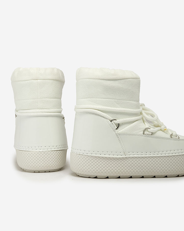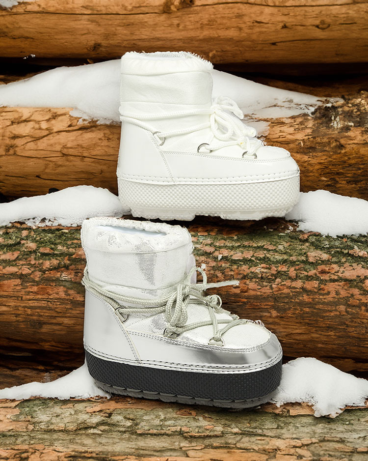 - Дамски ботуши за сняг с горна част, изработена от комбинация от еко лачена кожа и текстилен материал. Подплатени отвътре с плат, обувки с възможност за приплъзване и връзване. Перфектни за зимата!