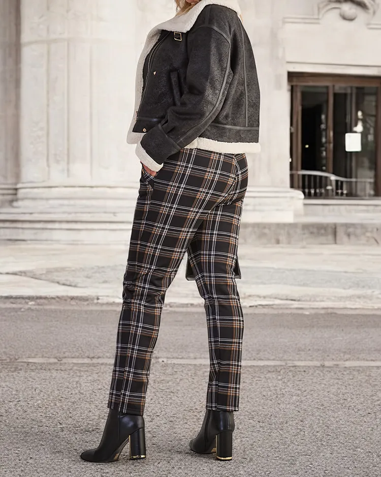 - Дамски панталони с гети, изработени от еластична материя. Моделът е с широк еластичен колан и 2 джоба за приплъзване. Продуктът е изолиран с дебела кожа и украсен с кариран десен. Хит на този сезон!