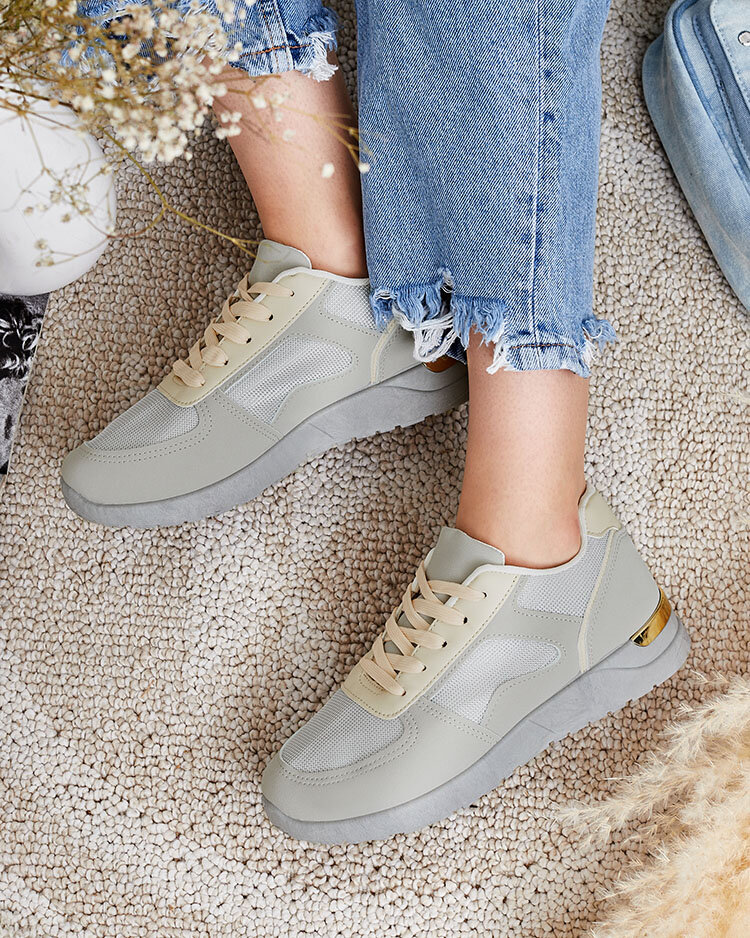 - Дамски спортни обувки от матирана екокожа, стелка от плат. Освен това обувките са украсени с метални вложки в задната част. Идеални за активно прекарано време!