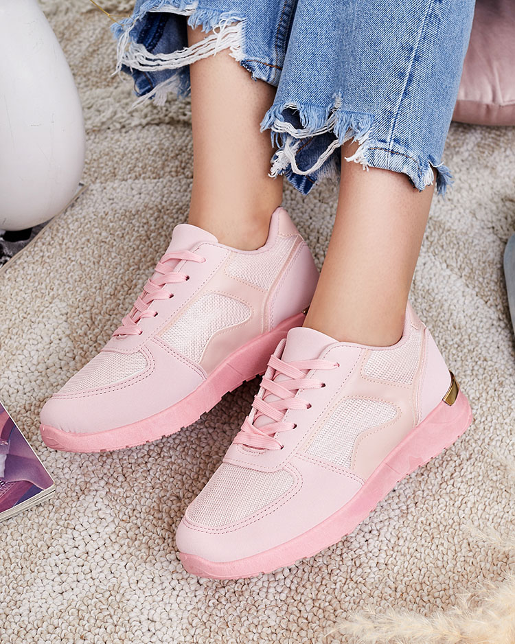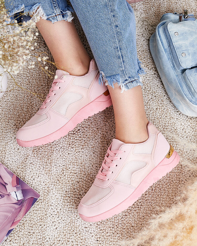 • Дамски спортни обувки от матирана екокожа, стелка от плат. Освен това обувките са украсени с метални вложки в задната част. Идеални за активно прекарано време!