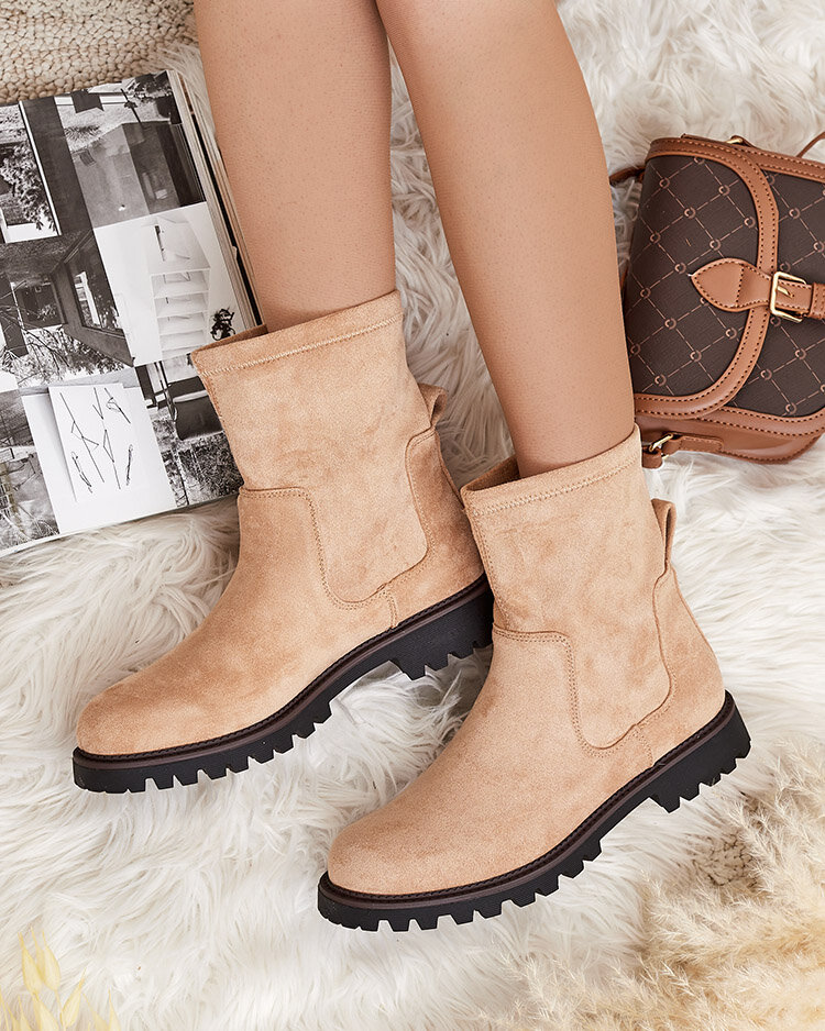 - Мега стилни, класически дамски ботуши с плосък ток. Горната част е изработена от екокожа. Обувките са с кожена стелка. Модел за обуване с приплъзване. Страхотен избор за есента!