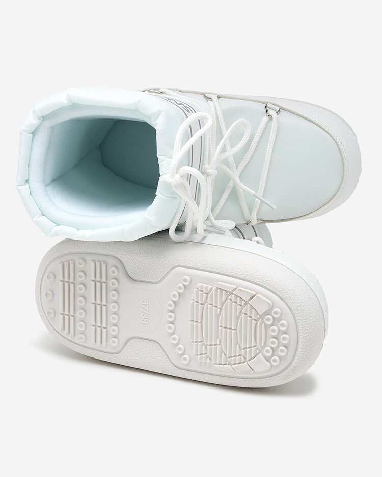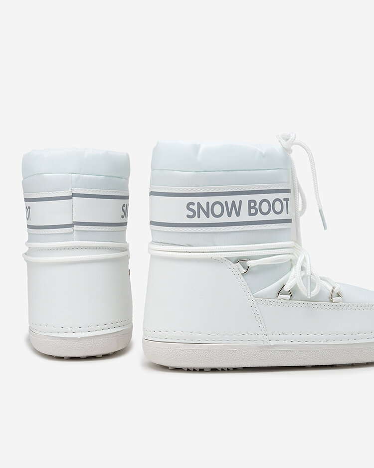- Дамски снежни боти с маншет от комбинация от еко-кожа и памучна тъкан. Облицовани с плат отвътре, обувки за прибиране и връзки, с маншет.