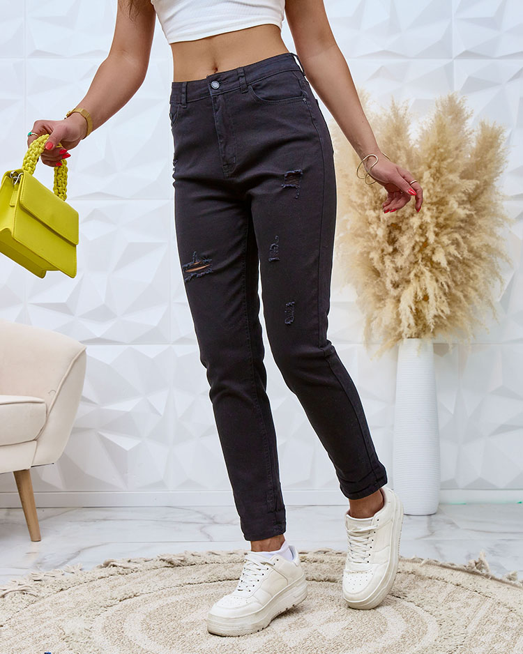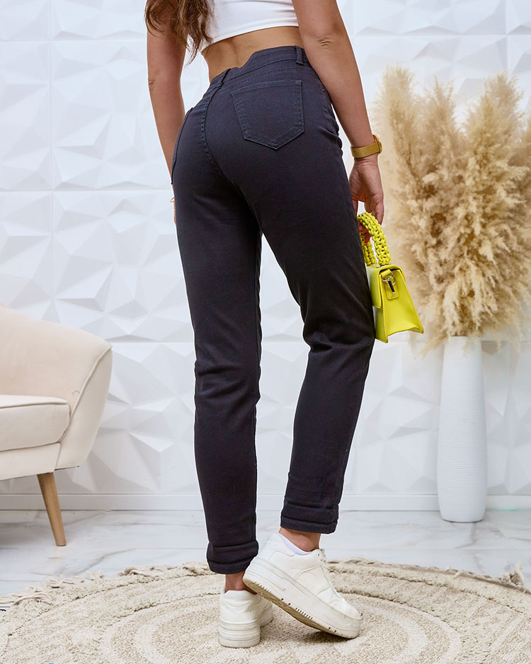- Стилни дамски дънки тип "мама", изработени от памучен материал.Характеристики на модела:- висок ръст,- закопчаване с копчета и цип,- 4 джоба.
