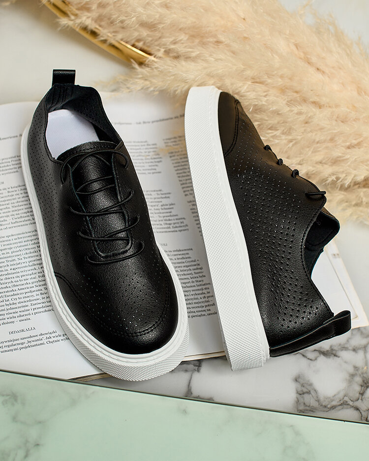 • Леки дамски спортни обувки в стил маратонки с равна подметка. Горна част с дантела, изработена от екологична кожа с ажурен завършек. Вътрешна част на стелката, изработена от текстилен материал. Чудесни за летни разходки!