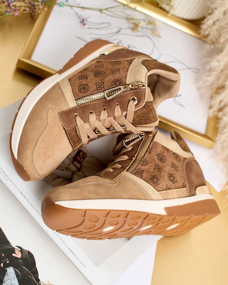 - Модерни дамски спортни маратонки със скрита котва, изработени от комбинация от еко велур и еко кожа. Отвътре има стелка от плат. Моделът е украсен с интересен модел и цип. Те ще бъдат чудесно украшение за ежедневния стайлинг.