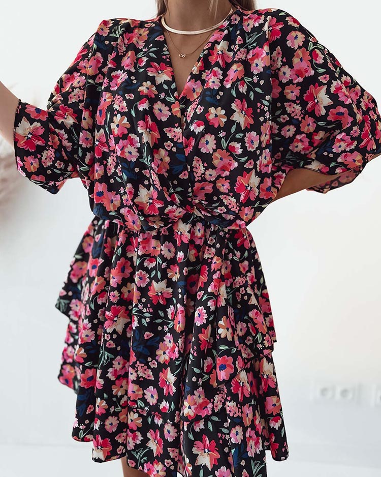 - Красивата дамска мини рокля е изработена от лека материя с оригинален десен. На височината на талията се простира ластик. Продуктът е с къси ръкави, сърцевидно деколте и широк подгъв.