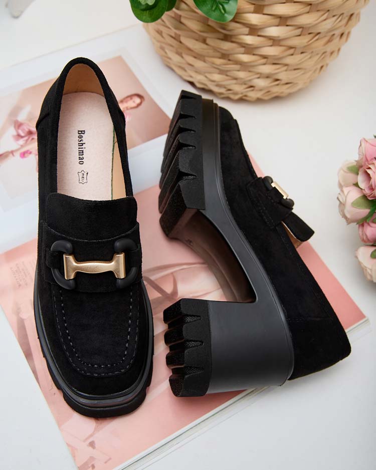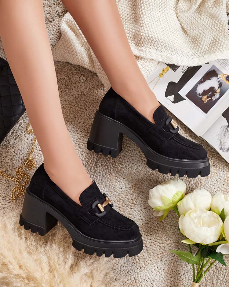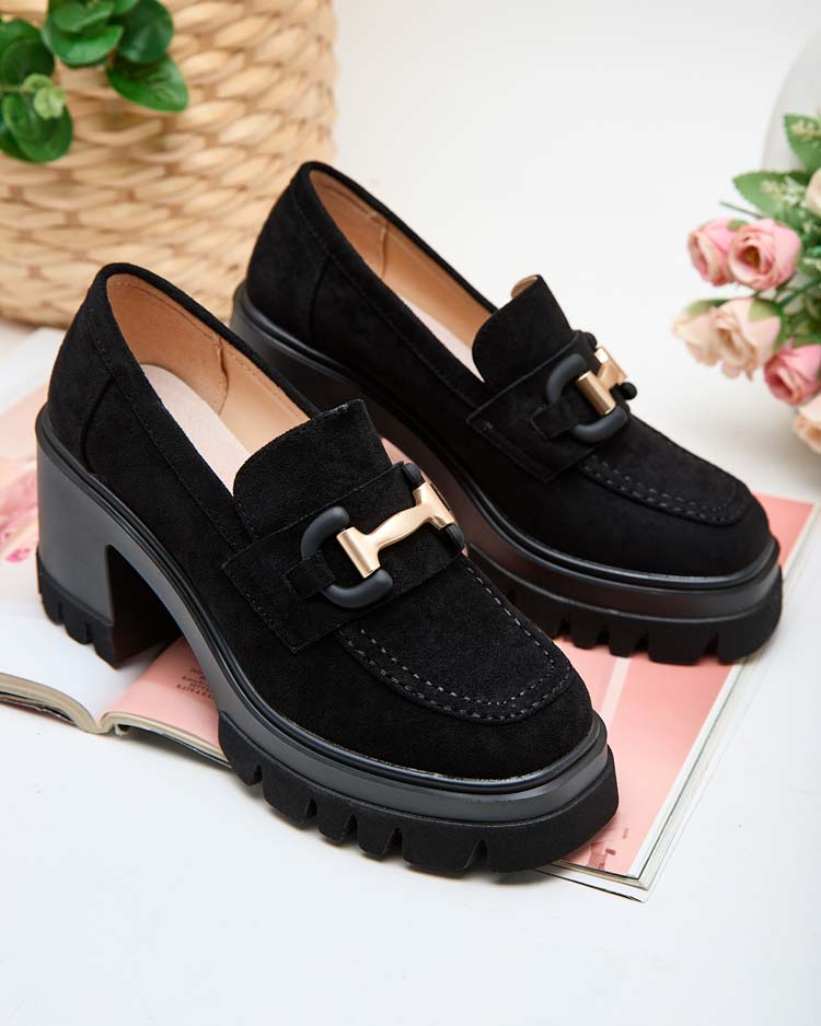 - Прекрасни дамски мокасини на висок ток. Моделът е в ежедневен стил и е изработен от екологична велурена кожа и стелка от естествена кожа. Заоблен нос. Идеална основа за много ежедневни визии!