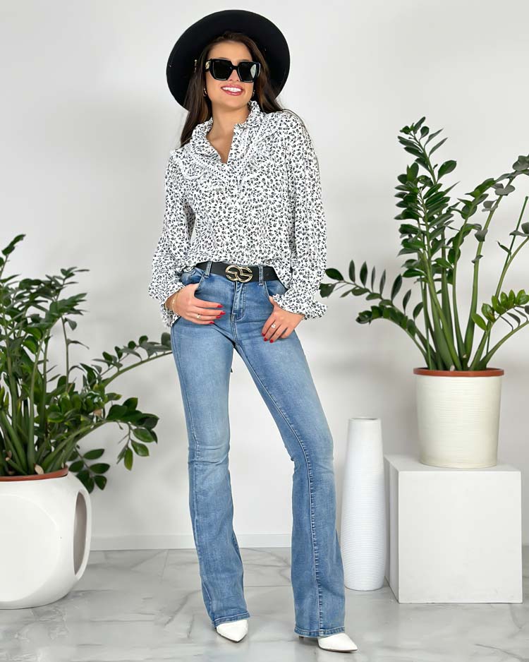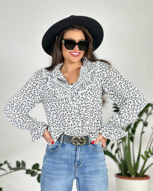 - Сензационна дамска риза с принт и дълъг ръкав. Моделът е с яка, закопчава се с копчета. Перфектна за ежедневно носене!