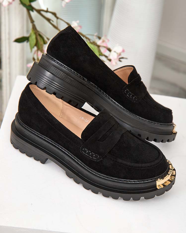 - Rewelacyjne mokasyny damskie na grubszej podeszwie, wykonane ze skóry ekologicznej zamszowej oraz eko skórzanej wkładki. Dodadzą stylu każdej stylizacji!