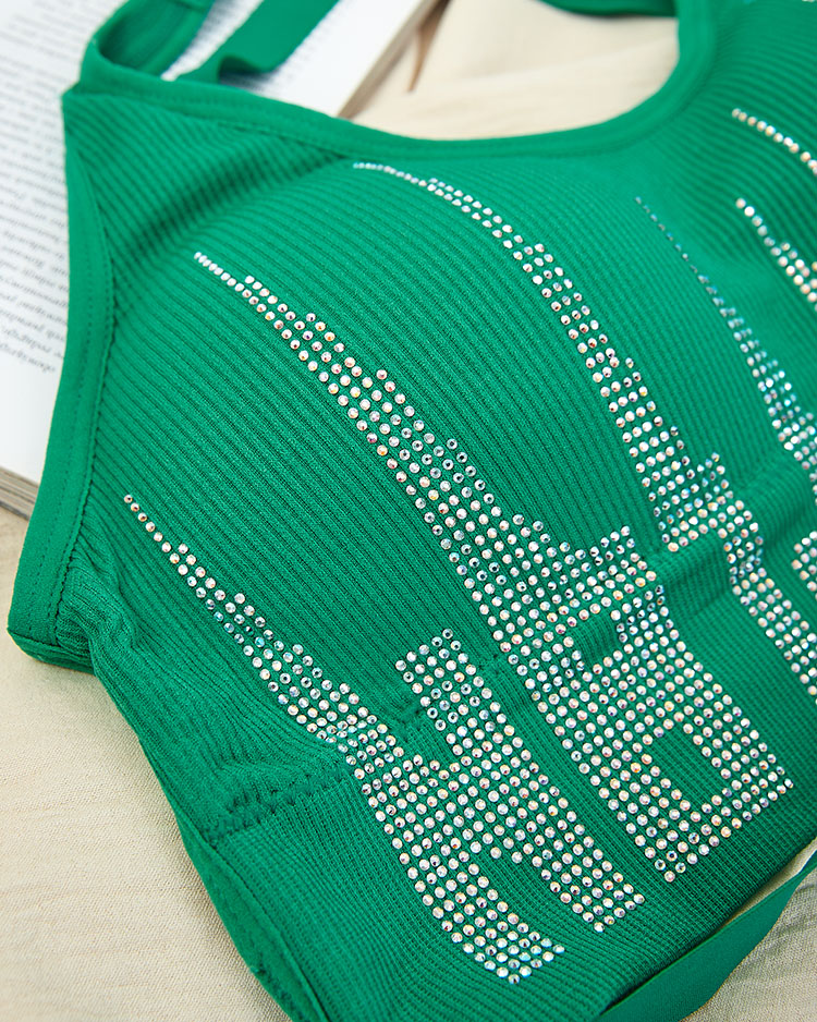 - Дамски спортен сутиен, изработен от еластичен, приятен материал. Модел с нерегулируеми, кръстосани презрамки, без закопчалка и с подвижни вложки, завършващ с широк ластик в долната част и украсен с циркони. Той ще прилепне идеално по тялото.