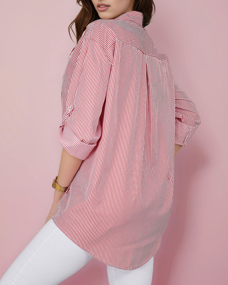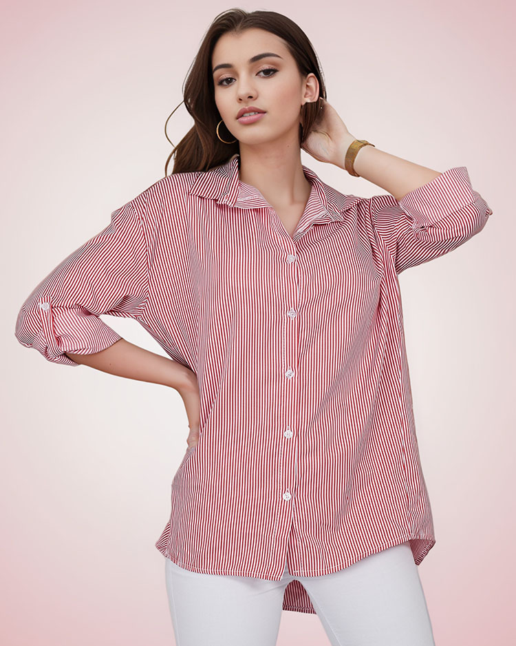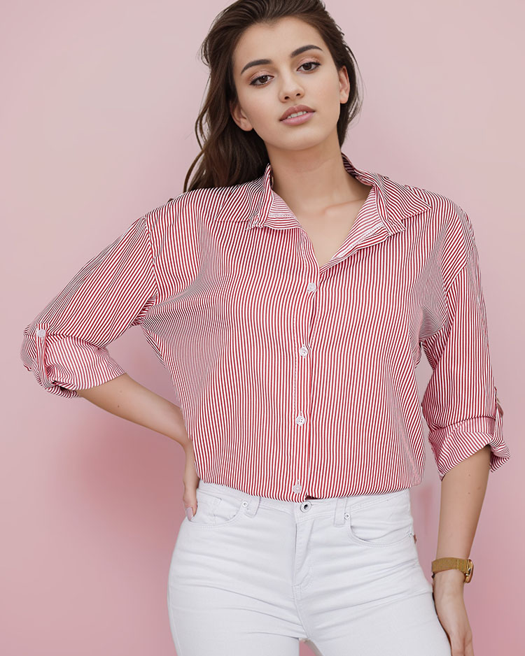 • Сензационна дамска раирана риза с дълъг ръкав. Моделът е с яка, закопчава се с копчета. Трябва да присъства в гардероба на всяка жена!