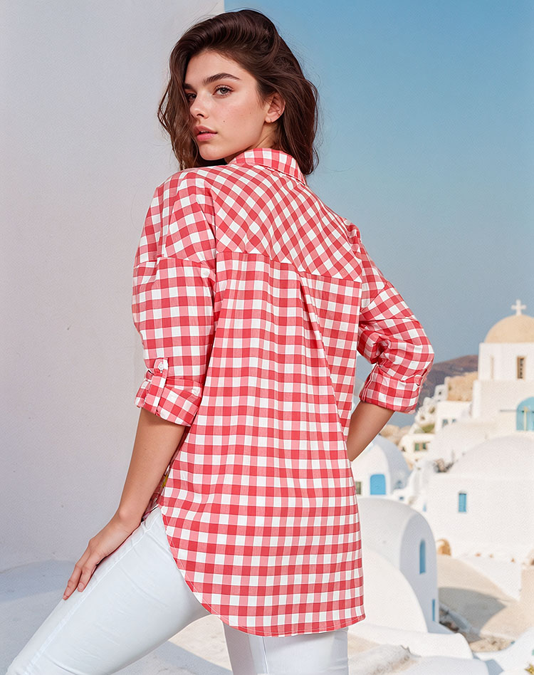 - Сензационна дамска карирана риза с дълги, навити ръкави. Моделът е с яка, която се закопчава с копчета. Трябва да присъства в гардероба на всяка жена!