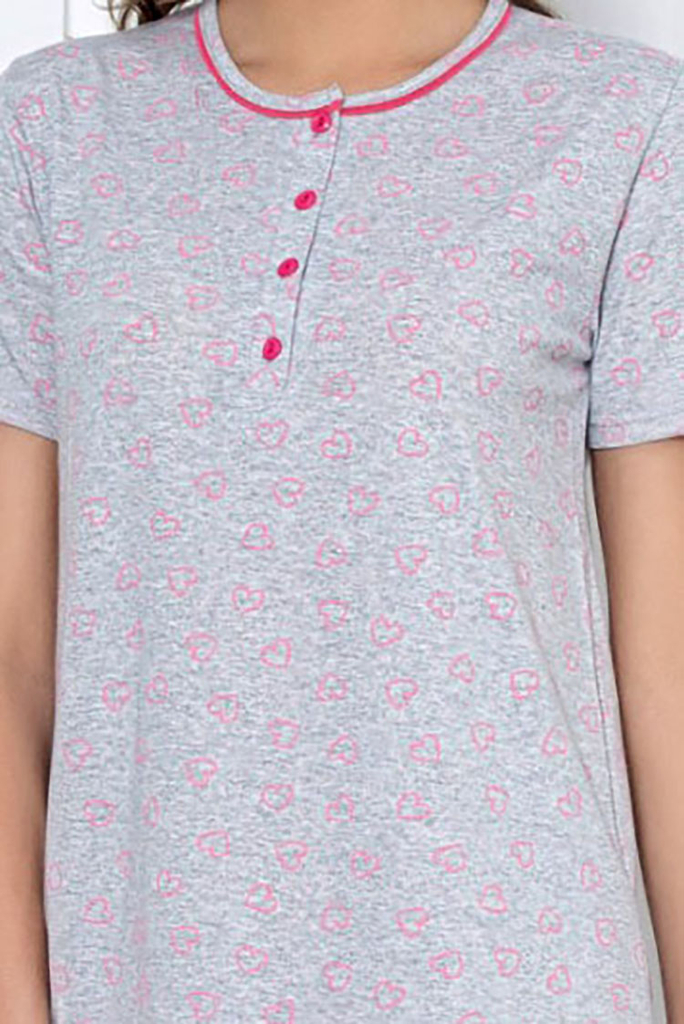• Много удобна риза с къс ръкав. Изработена е от 100 % памук и завършва с декоративна щампа. Моделът е с кръгло деколте с декоративни копчета. ЗАБЕЛЕЖКА: Точност на измерването (+/-) 1 см.
