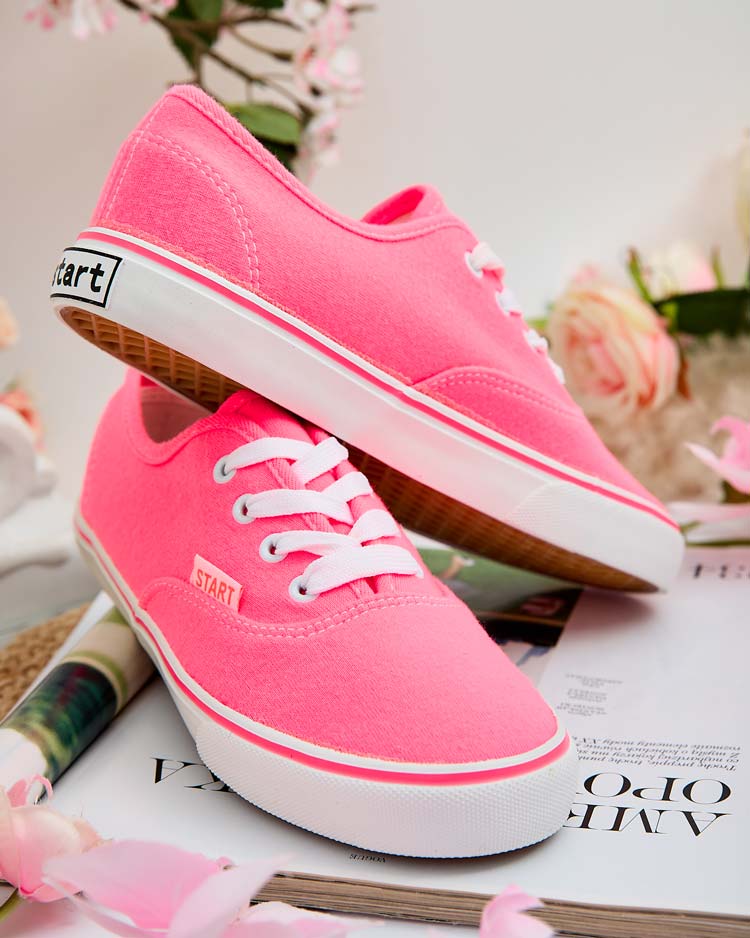 - Олекотени дамски спортни обувки в стил маратонки с плоска подметка. Горна част с дантела, изработена от плат. Вътрешна част на стелката, изработена от текстилен материал. Чудесни за летни разходки!