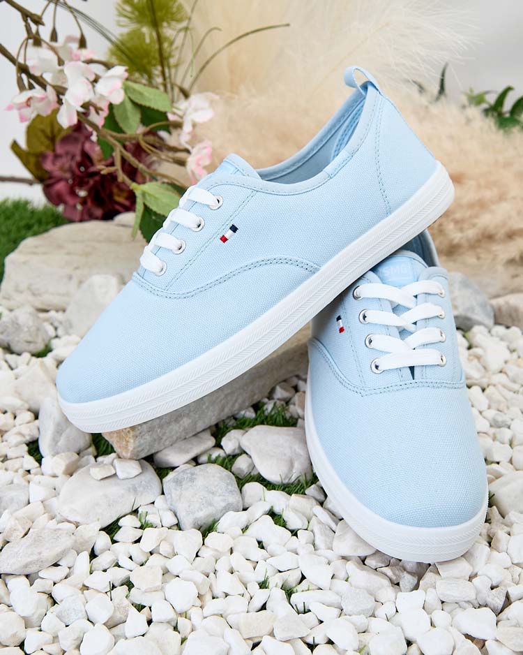- Олекотени дамски спортни обувки в стил маратонка с плоска подметка. Горна част с дантела, изработена от плат. Вътрешна част на стелката, изработена от текстилен материал. Чудесни за летни разходки!
