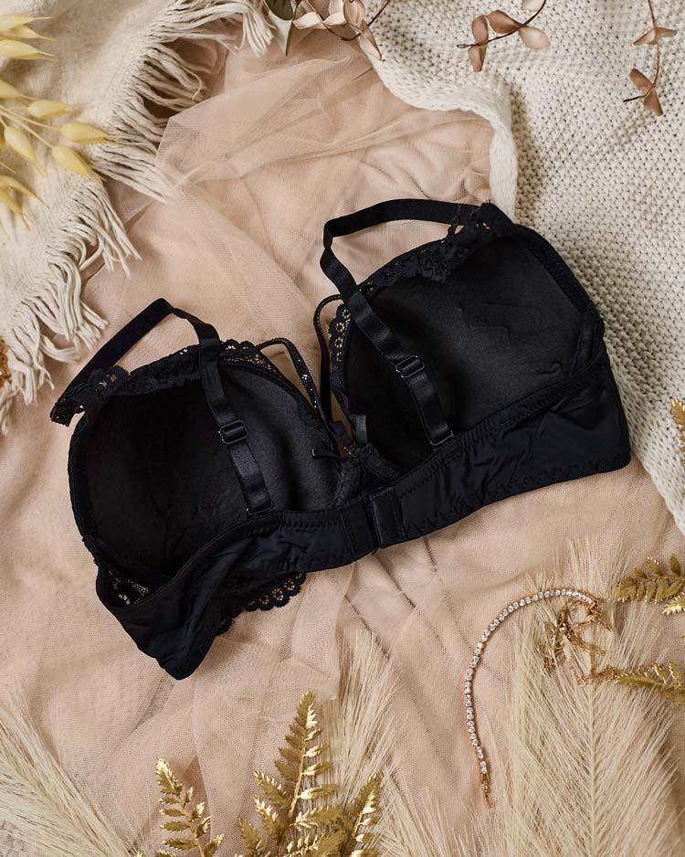 - Изключителен дамски сутиен с подплънки. Фините завършеци с деликатна дантела допринасят за неговата елегантност. Продуктът се закопчава на гърба с кукички. Презрамките могат да се свалят и да се регулират. Моделът е с декоративни презрамки с циркони.