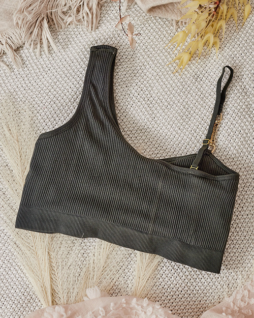 Royalfashion Дамски оребрен сутиен с декоративна каишка