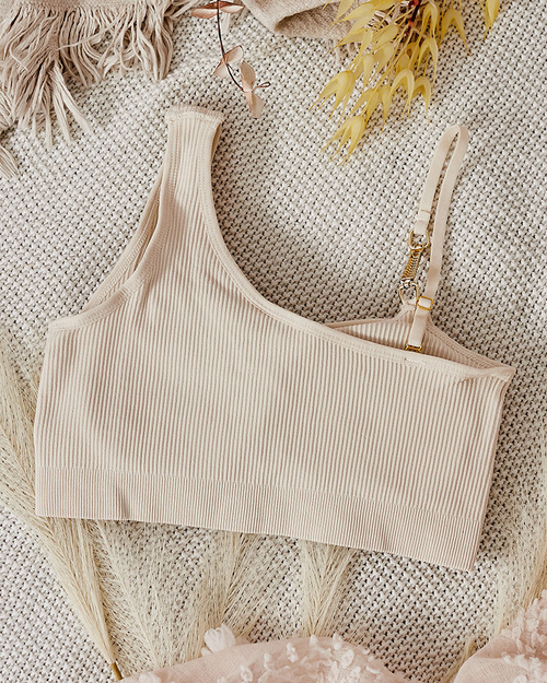 Royalfashion Дамски оребрен сутиен с декоративна каишка