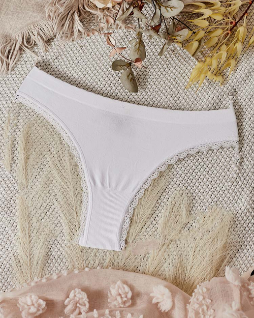 • Дамски бикини с ребро - изработени от еластична и тънка материя. Имат еластичен колан на талията. ЗАБЕЛЕЖКА: Точност на измерването (+/-) 1 см.