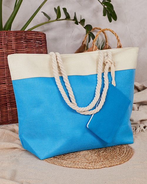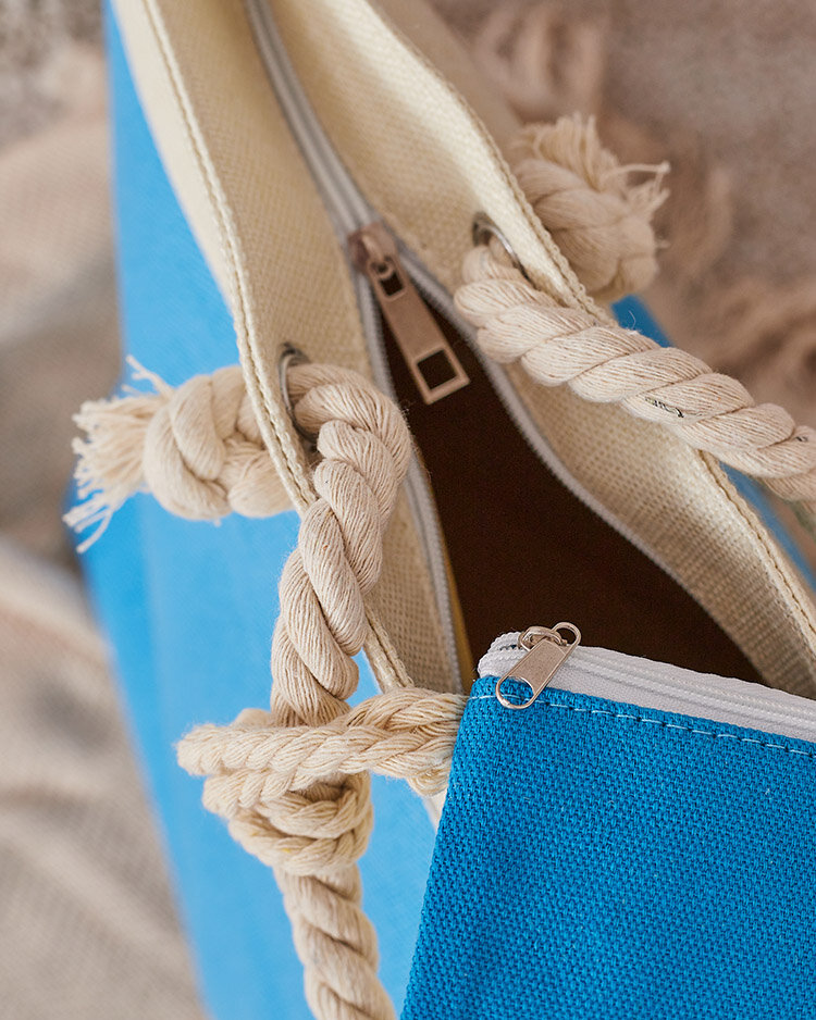 - Голяма дамска чанта, изработена от плат в празничен десен. Моделът има 1 отделение и се закопчава с цип. Идеална за всеки ден или за плажа!
