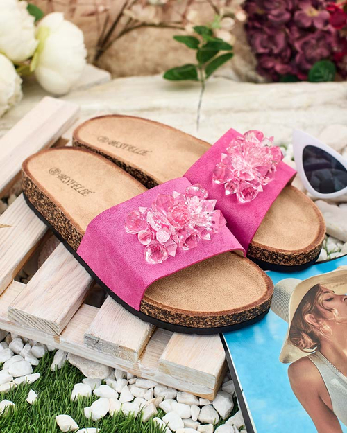 - Плоските джапанки с кристали на каишката са уникална комбинация от стил и комфорт. Горната част и стелката, изработени от еко велур, им придават елегантен вид. Подметката, украсена с пластмаса, наподобяваща корк - допринася за тяхната оригиналност!