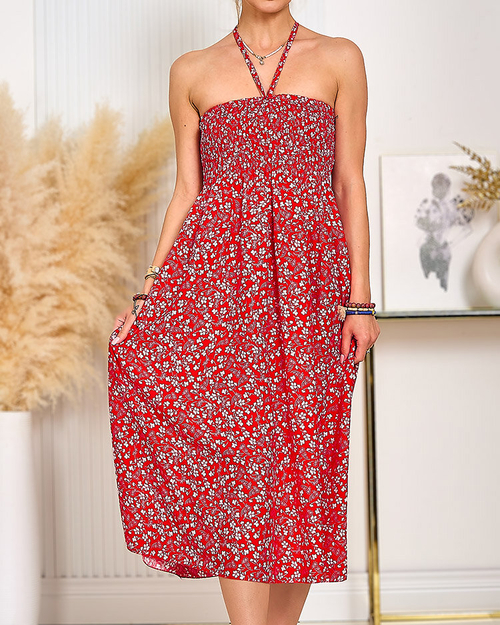 - Уникална ефирна рокля с дължина до коляното. Моделът е без презрамки, има еластична лента през бюста и връзки на врата. Идеален избор за летните дни! ЗАБЕЛЕЖКА: Точност на измерването (+/-) 1 см.