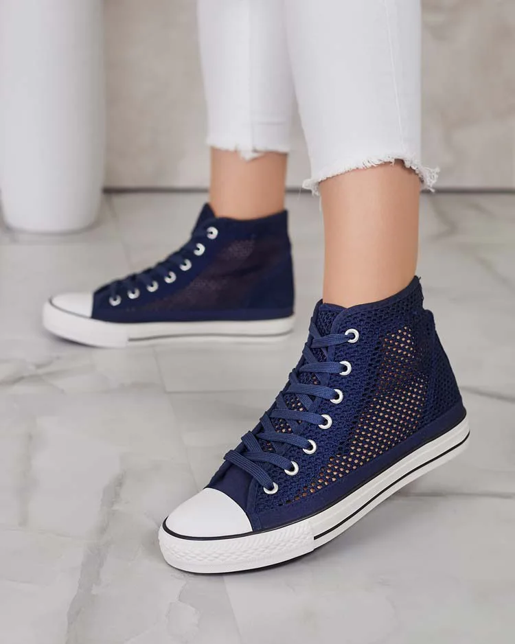 - Дамски обувки с равна подметка. Чифтът в ежедневен стил е изработен от текстилен материал с ажурно покритие, стелка от плат. Идеални за тези, които ценят комфорта!