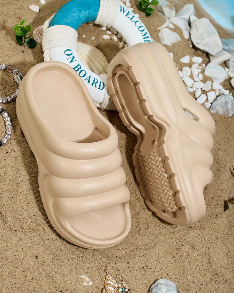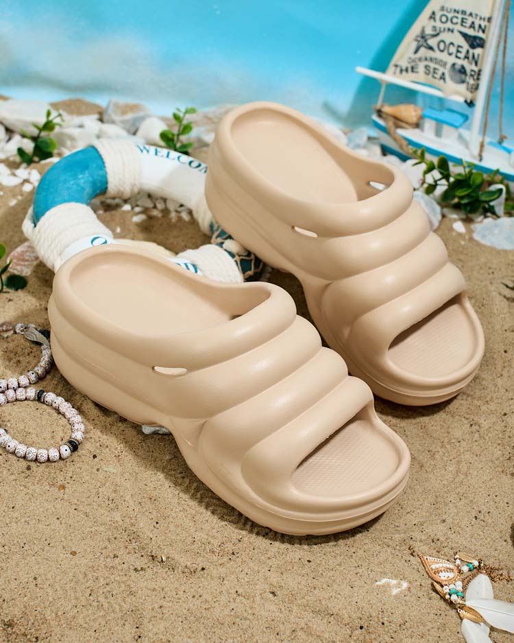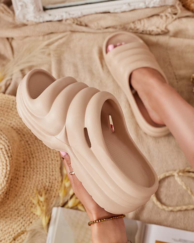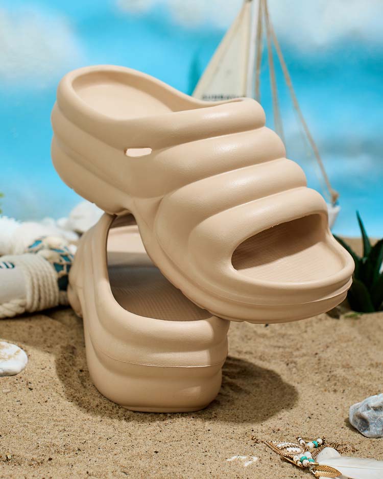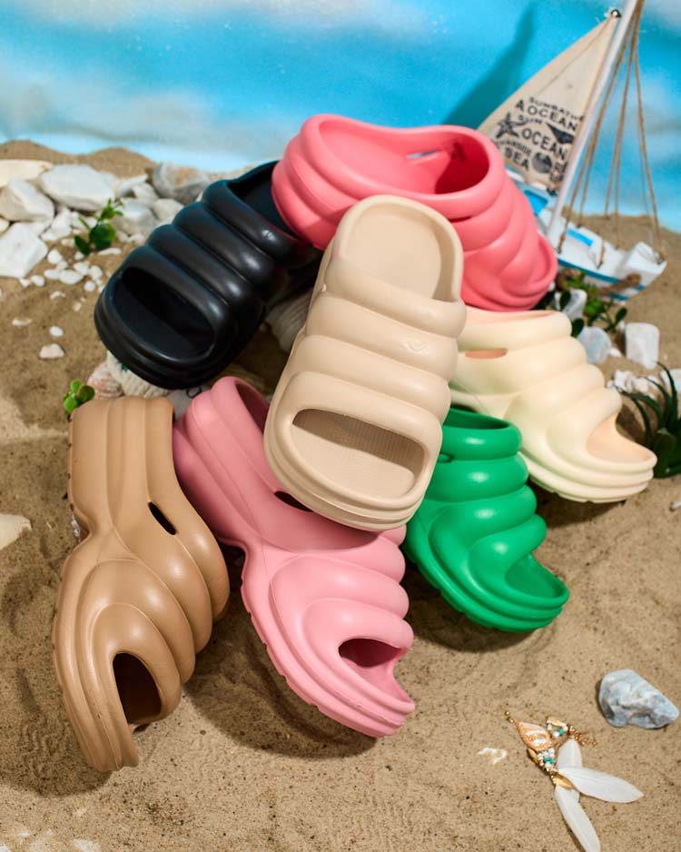 - Красиви дамски гумени джапанки с по-дебела подметка. Моделът е с цялостна асиметрична форма, която допринася за стила им. Перфектен избор за дома, градината, както и за ваканциите!