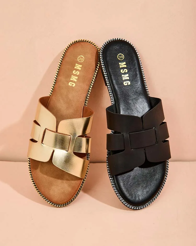 - Страхотни дамски джапанки с плоска подметка. Изработени изцяло от екологична кожа. Перфектен избор за ваканциите!