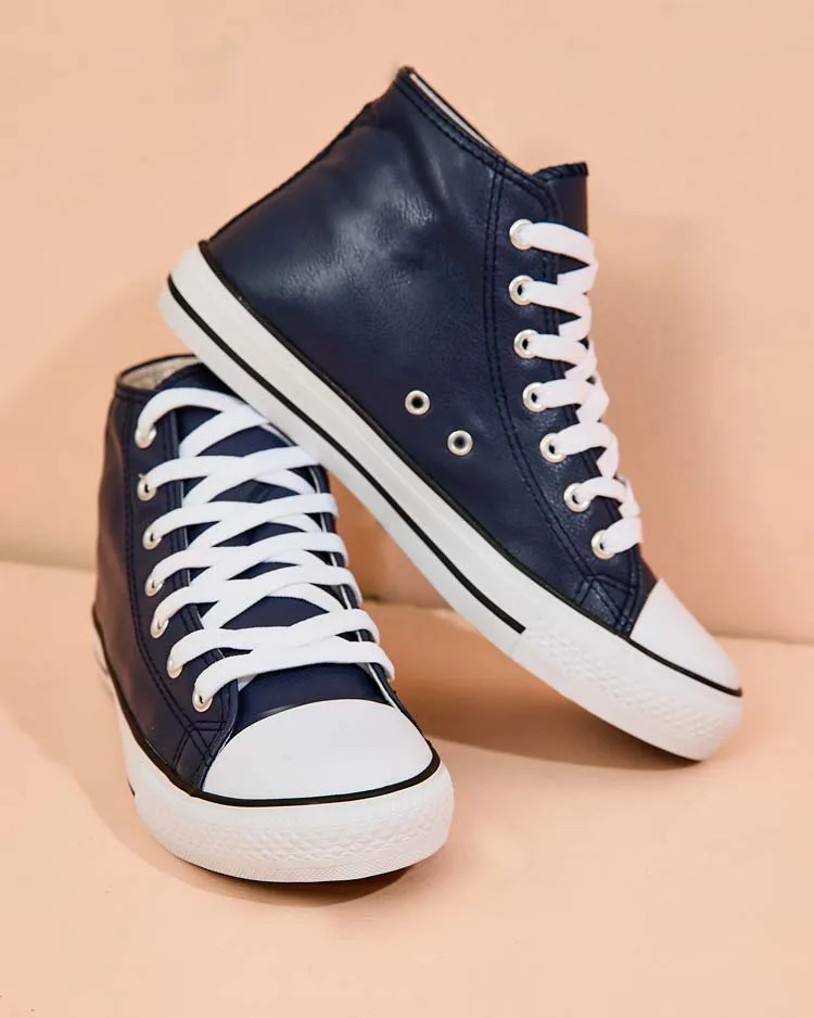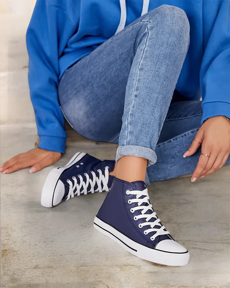 - Дамски високи спортни кецове от еко кожа и стелка от плат. Моделът е на удобна подметка. Горната част е с дантела. Чудесни за създаване на ежедневни тоалети!