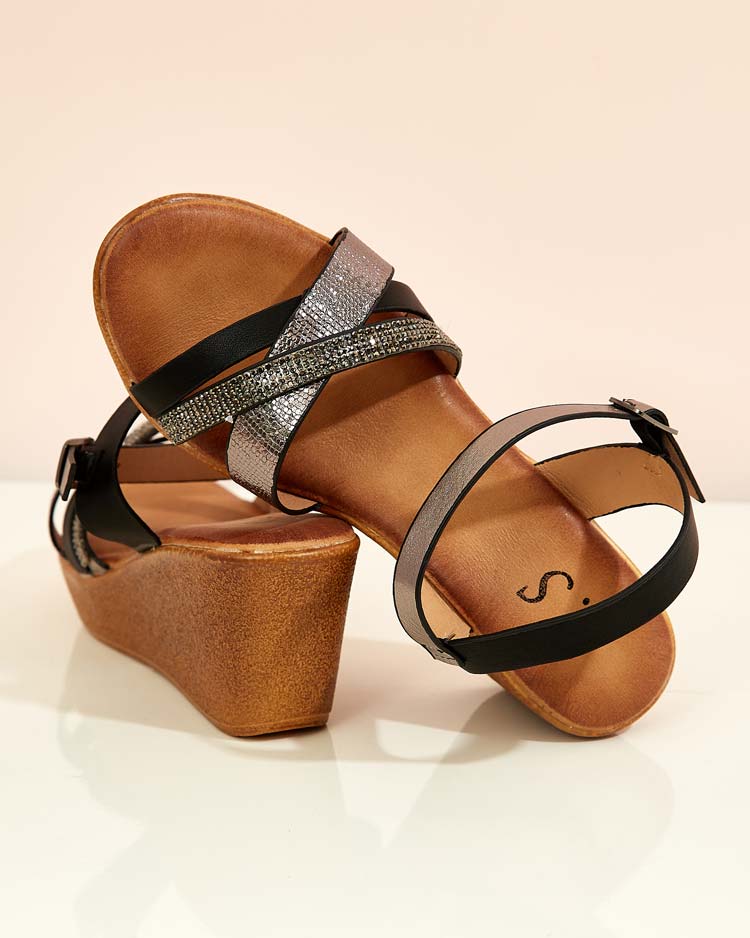 • Дамски сандали на нисък ток - това е перфектната идея за горещите летни дни. Моделът изцяло изработен от екологична кожа. Горната част е украсена с декоративни циркони. Носете ги с къси шорти!