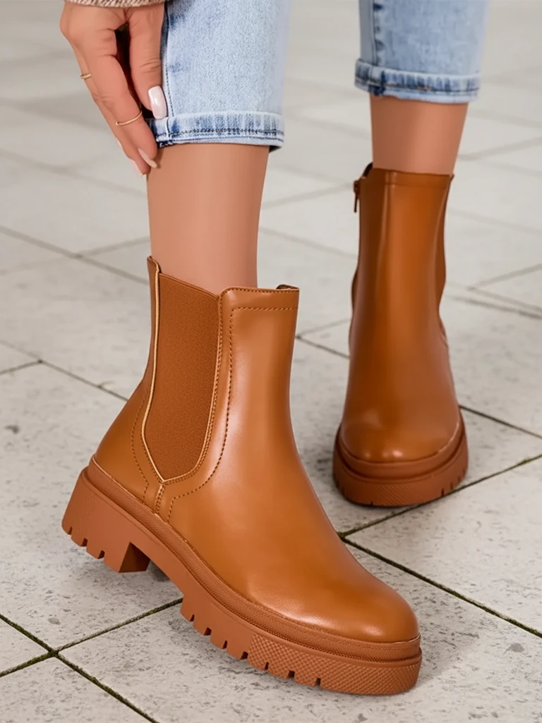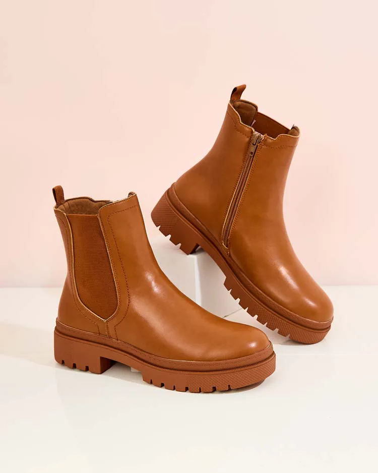 - Ботуши с по-дебела подметка - стил и комфорт в едно. Еластична вложка отстрани и закопчаване с цип за лесно носене. Изцяло изработени от еко кожа и вътрешна стелка от плат. Този модел ще ви вдъхне увереност!