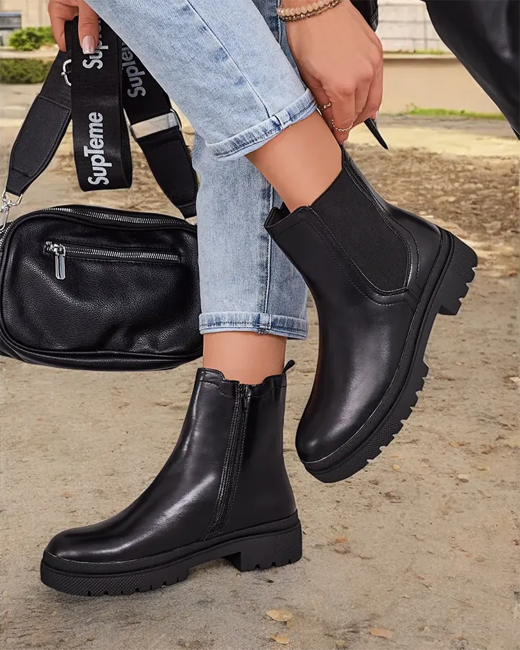 - Ботуши с по-дебела подметка - стил и комфорт в едно. Еластична вложка отстрани и закопчаване с цип за лесно носене. Изцяло изработени от еко кожа и вътрешна стелка от плат. Този модел ще ви вдъхне увереност!
