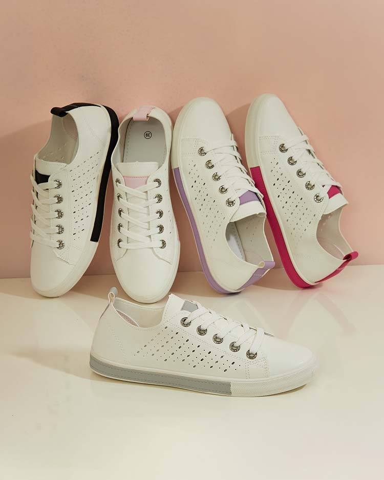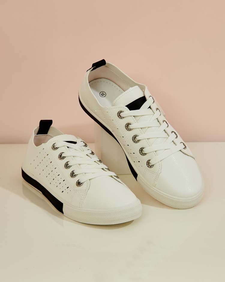 - Ажурни дамски спортни маратонки от еко кожа и стелка от еко кожа. Модел с връзки, на равна подметка. Те ще се впишат идеално към ежедневния стайлинг!