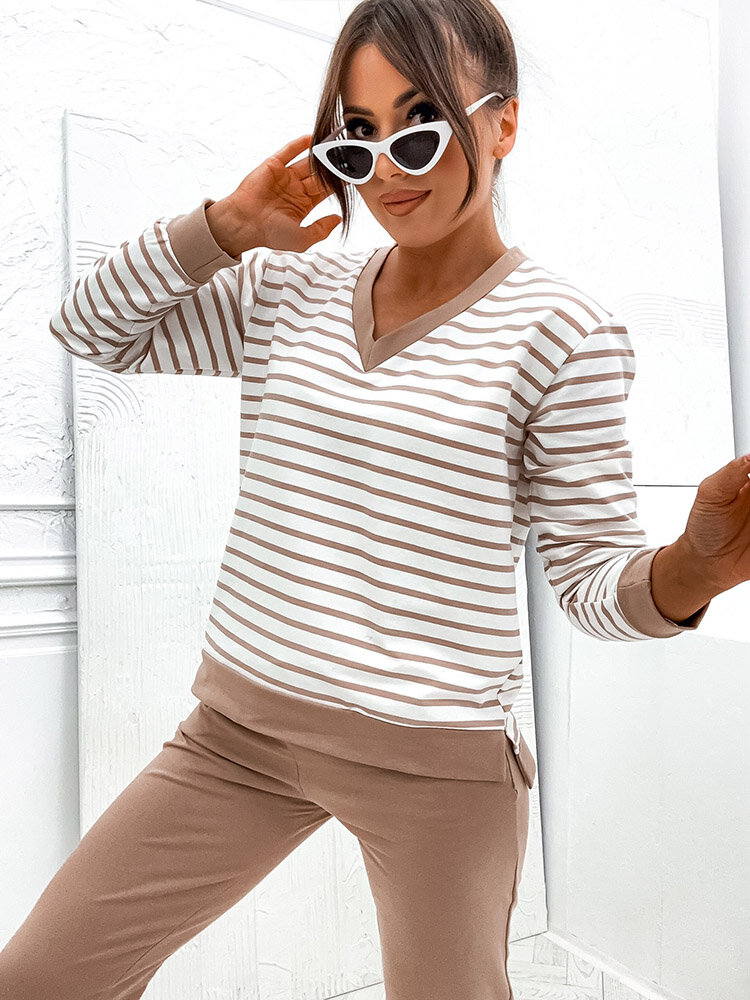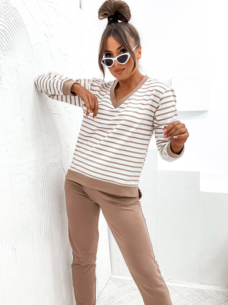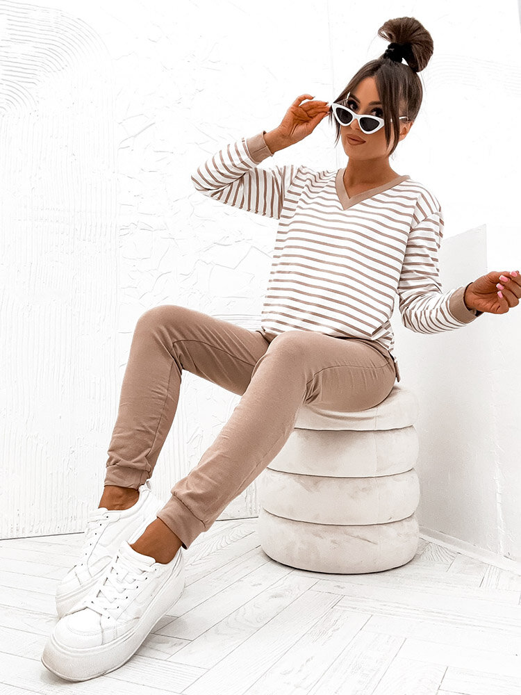- Дамски комплект от приятен текстилен материал на райета. Потник с дълъг ръкав без качулка. Потници с еластична талия и 2 джоба. Перфектен избор за ежедневно носене!